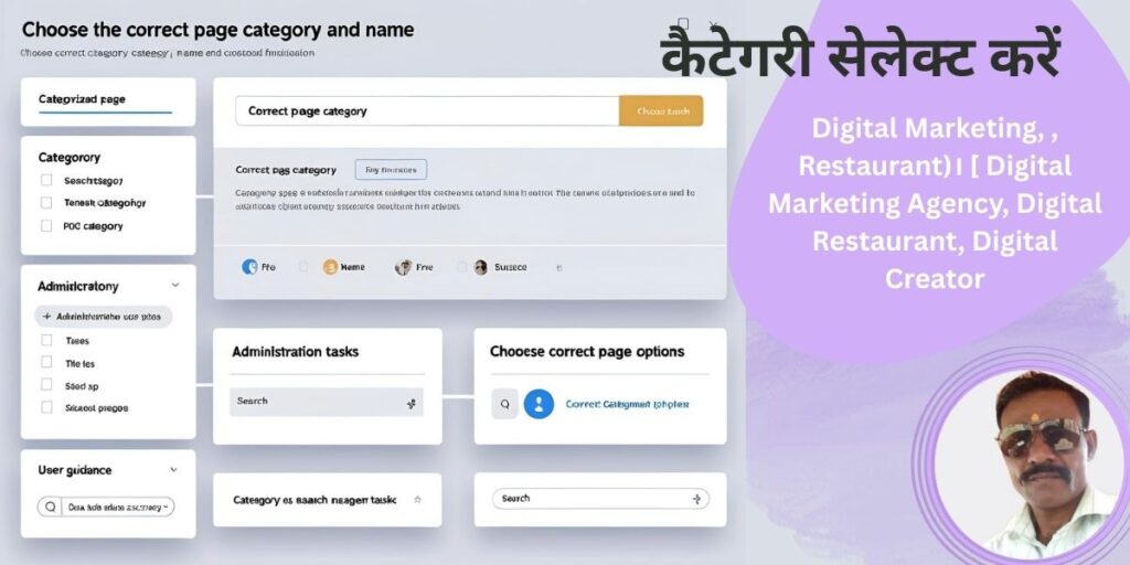 • अपने बिज़नेस से संबंधित कैटेगरी सेलेक्ट करें याहा आप अपने मन से केटेगरी सेल्क्ट नहीं कर सकते जो याहाँ दी गई कैटेगरी चुनें और अपनी कैटेगरी अलग से न डालें, वरना आपका पेज सेव नहीं होगा और आपको कुछ दिक्कत हो सकती है। उदाहरण के लिए, मैं आपको तीन कैटेगरी दे रहा हूँ (जैसे Digital Marketing, , Restaurant)। [ Digital Marketing Agency, Digital Restaurant, Digital Creator
